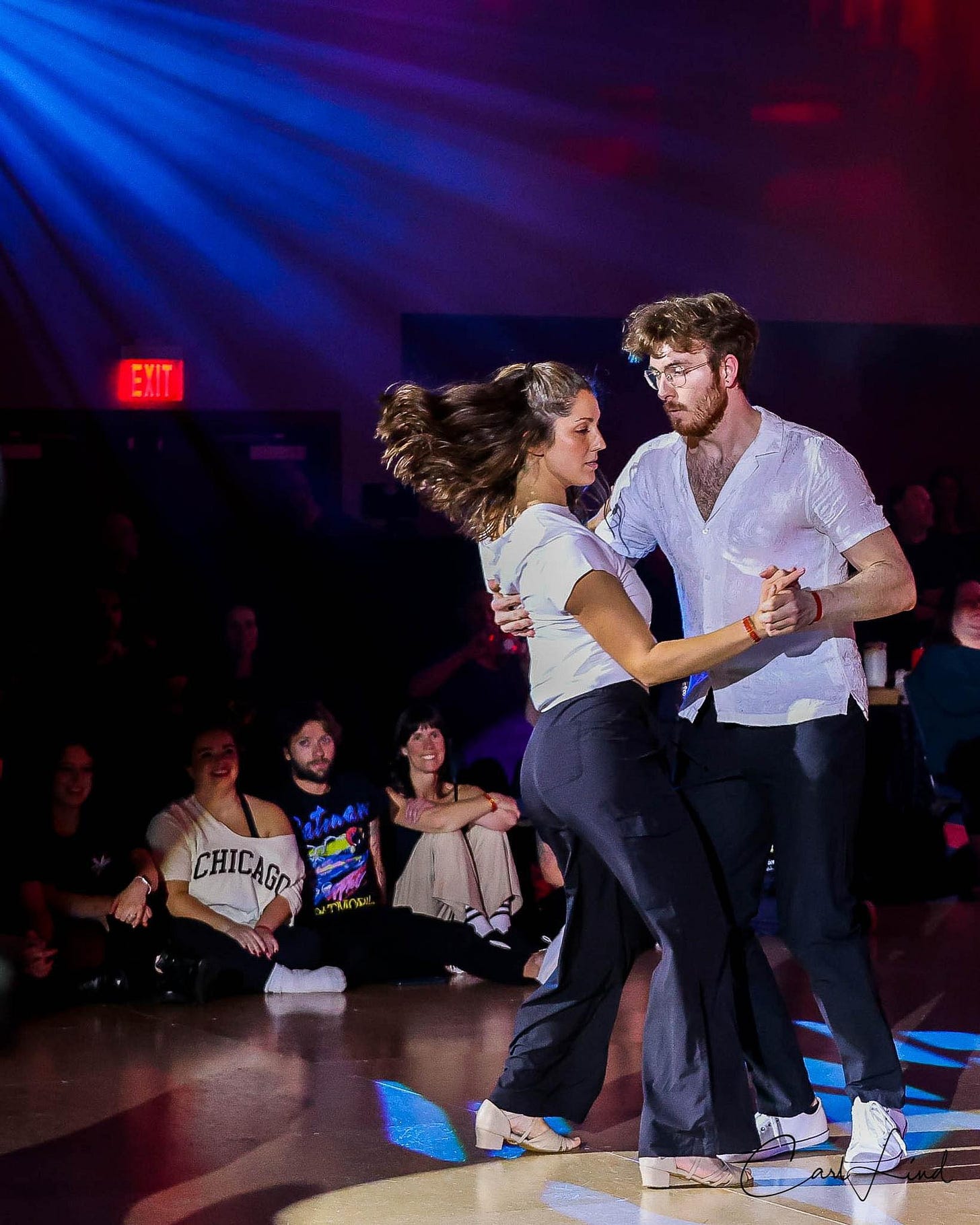 They move so flawlessly together because they’ve each individually worked hard on their frame, their control over their body and the space they inhabit in partnered dance. They have mastered how to hold a flexible structure that can sensitively receive their partner’s frame.